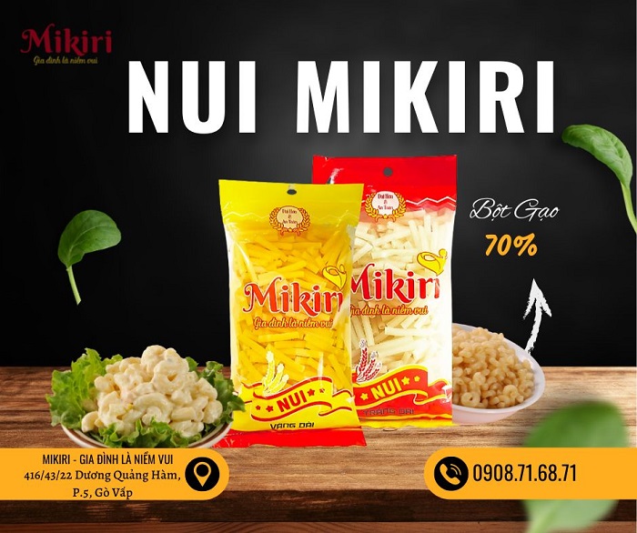 Mikiri là nhãn hàng ắt hẳn không còn xa lạ gì đối với người tiêu dùng Việt Nam. Rất dễ có thể bắt gặp bất kì sản phẩm với bao bì Mikiri ở mọi nơi. Nui Mikiri cũng vậy, dần dần khẳng định được lòng tin của người tiêu dùng. Với thành phần từ tự nhiên và an toàn. Hoàn toàn không có hàn the, không phẩm màu.Hiện tại có thể mua Nui Mikiri tại các cửa hàng, chợ ở khu vực toàn quốc. Ngoài ra có thể mua hàng trực tuyến qua các kênh thương mại điện tử như Tiki, Shopee, Lazada...
